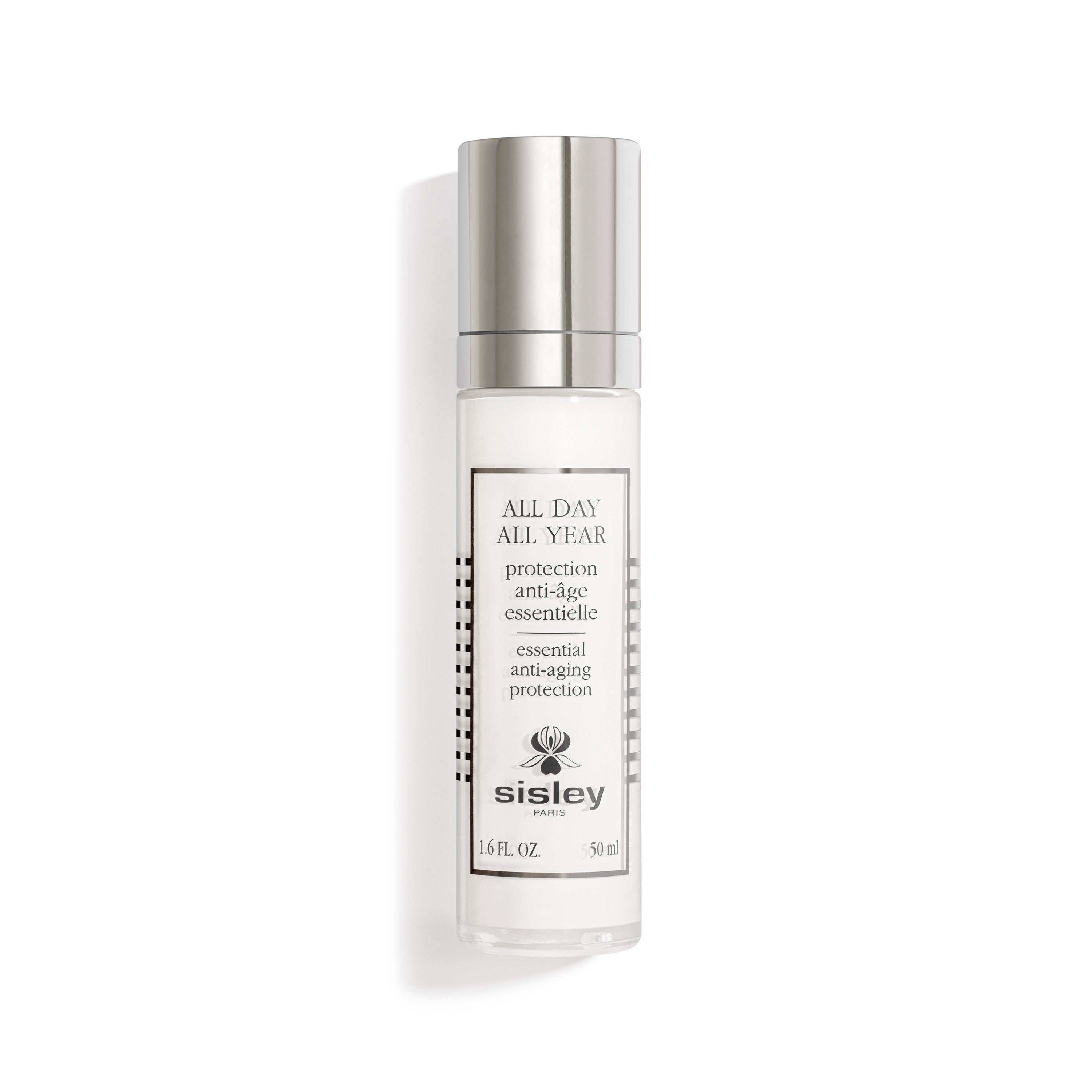 Durante el día, nuestra piel utiliza su energía para protegerse. All Day All Year es el producto de cuidado de día perfecto, que apoya la piel actuando como un escudo protector global. Protege la piel mientras activa sus mecanismos de autodefensa* para mantener la piel luce más joven durante más tiempo. Al diseñar All Day All Year, los Laboratorios Sisley estudiaron los factores internos y ambientales a los que estamos expuestos a lo largo de nuestra vida. Estos factores se agrupan bajo el término científico exposoma, que engloba Las radiaciones solares, la contaminación y el humo del cigarrillo en particular, son responsables del 80% del envejecimiento cutáneo. La fórmula compleja y altamente concentrada de All Day All Year protege la piel de los agresores que causan el envejecimiento prematuro y la realza. -poder de defensa* gracias a dos escudos físicos y biológicos complementarios. El escudo físico proporciona una protección integral en la superficie de la piel: - contra los rayos UVA y UVB durante todo el día*, mediante su filtros encapsulados que no penetran la piel**/***. - contra los contaminantes para limitar su penetración en la piel***. Dentro de la piel, el escudo biológico estimula sus defensas naturales al : - fortalecer la barrera cutánea. - activar las capacidades de autodefensa* de la piel para limitar los efectos nocivos de los contaminantes*** y los rayos UV*. - proporcionar una acción antienvejecimiento. Un escudo global que protege inmediatamente la piel en la superficie, refuerza su resistencia y estimula su poder natural*. Su textura confortable y fundente deja un acabado sedoso y sin brillo en la piel. y permite aplicar el maquillaje poco después de su aplicación. Su frasco de vidrio ha sido diseñado para ser reciclable, en particular mediante una bomba extraíble y el uso de vidrio compatible con las tecnologías de reciclaje. El poder de defensa de la piel se fortalece*. La piel queda más tersa, suave y confortable. Las arrugas y las líneas finas se reducen, la piel está más densa. Es más bella, más luminosa y luce más joven por más tiempo. * test in vitro* test in vitro - ** más del 99% de los filtros permanecen en la superficie de la piel - *** test ex vivo