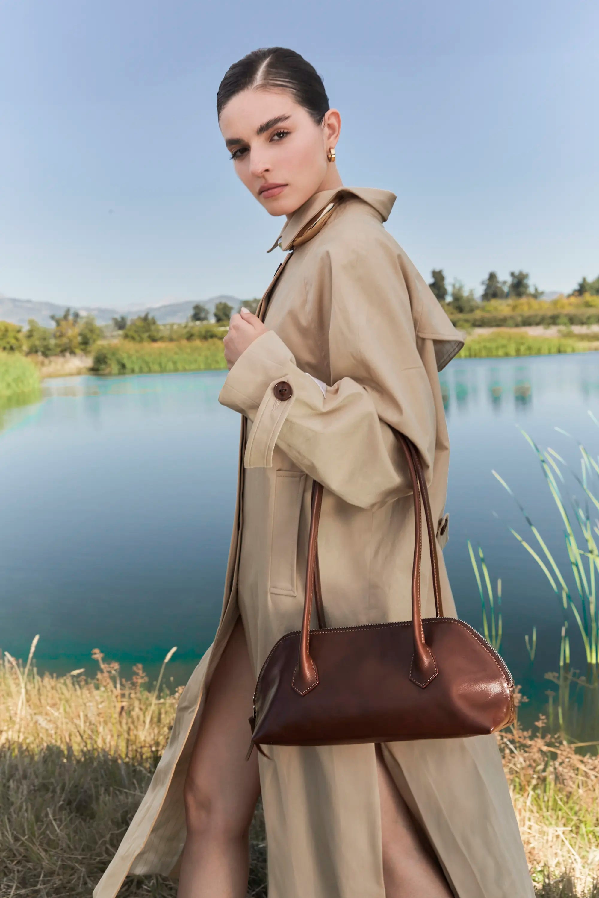 Amelie es un bolso estructurado y elegante, diseñado para colgar cómodamente al hombro. Sus manillas miden aproximadamente 65 cm. Tiene cierre metálico y en su interior bolsillo con cierre, bolsillo porta celular y gancho para llaves. Forrado con tela 100% algodón.