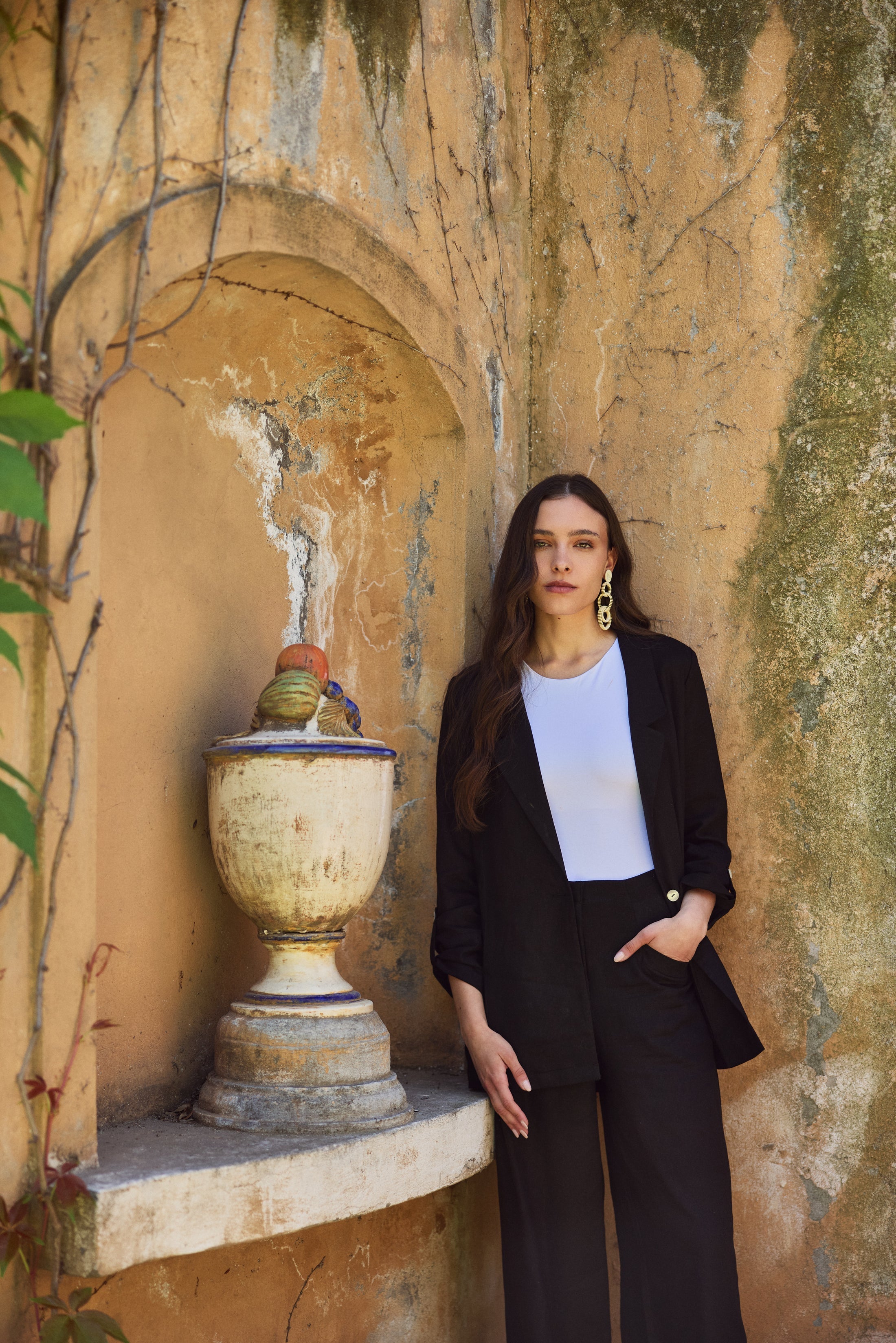 El Blazer Valentina es sinónimo de elegancia natural. Nuestro blazer tiene botones de concha perla, y ajustadores en los brazos para hacerlo manga 3/4. Tiene dos bolsillos delanteros. Su estructura precisa y detalles sutiles aportan carácter y sofisticación. Ideal para elevar cualquier conjunto, ya sea con pantalones, shorts o faldas de lino, aportando un toque de distinción sin esfuerzo.