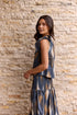 Confeccionada en popelina de algodón (99% algodón y 1% spandex), ofrece una textura ligera, suave y con un leve toque de elasticidad que aporta mayor comodidad y libertad de movimiento. Su estructura combina lo casual con lo sofisticado, perfecta para días cálidos o para elevar un look simple con un detalle especial.