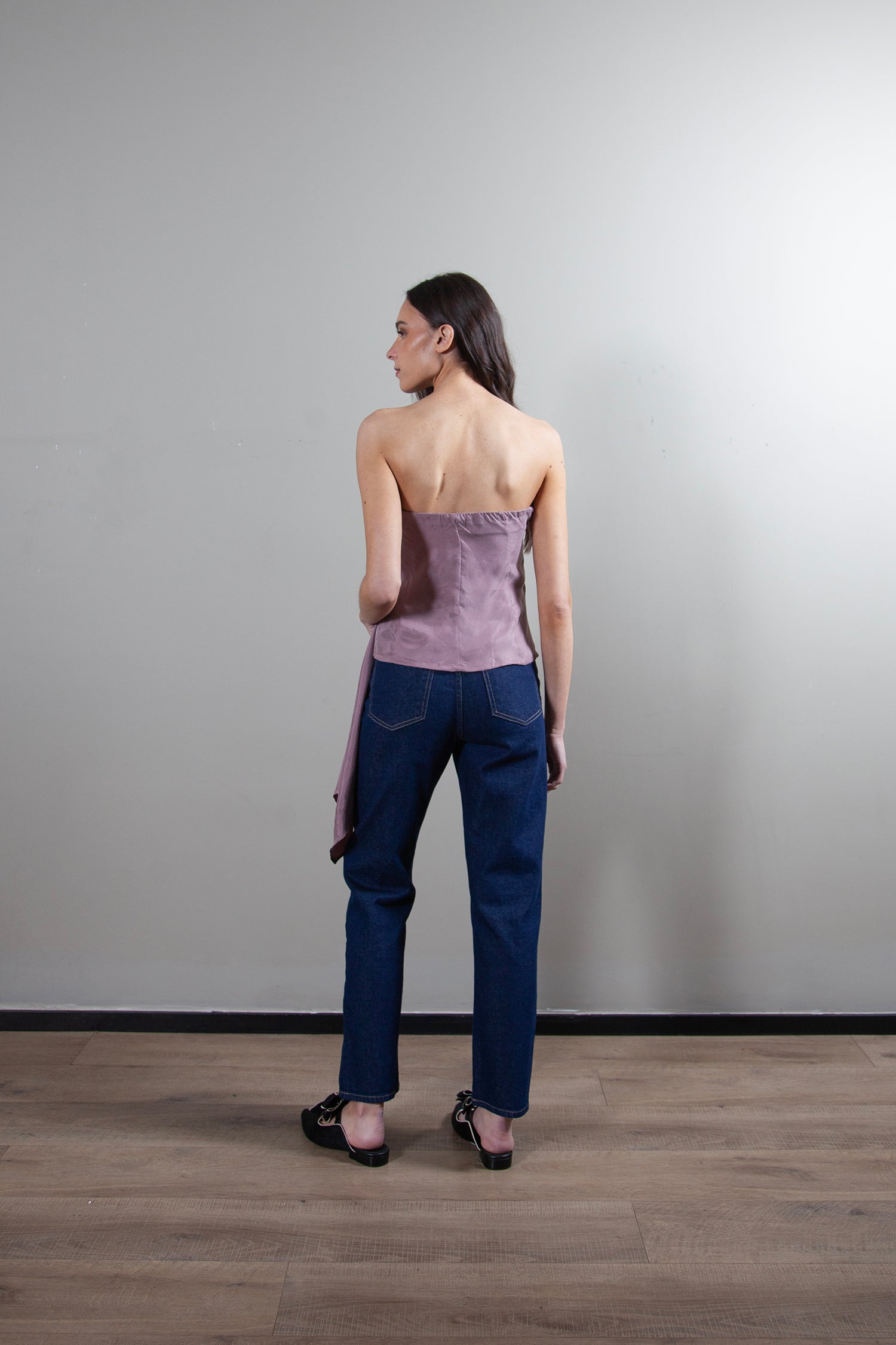 La blusa Clara es una blusa strapless que realzará tu silueta con elegancia. El elástico en la espalda asegura un ajuste perfecto, mientras que el cierre invisible y el lazo lateral le añaden un toque de distinción. Su suave tela de cupro y viscosa se siente increíble en la piel. Es la compañera ideal del pantalón Amelia, pero también lucirá espectacular con unos pantalones de tiro alto.