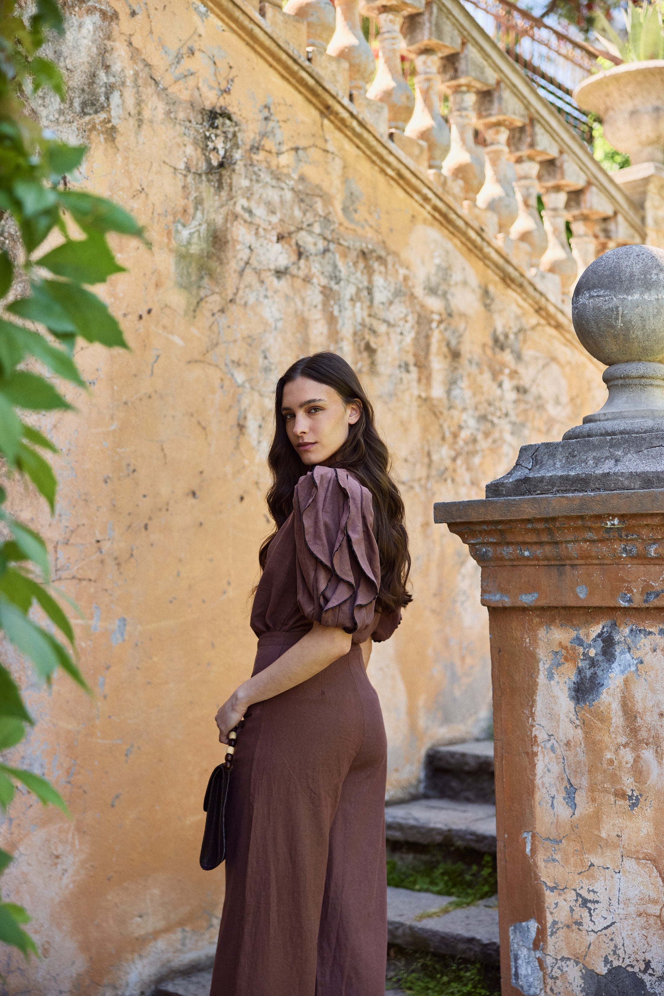 La Blusa Leticia fusiona sencillez y sofisticación. Es una blusa abotonada cuello mao que destaca por sus mangas globo con mucho volumen. Perfecta para acompañar con pantalones o faldas de lino y resaltar la elegancia natural de quien la lleva.