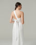 De corte asimétrico y ajustado a la silueta, incorpora pinzas en el busto y un lazo en la espalda que permite un ajuste perfecto.