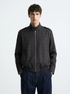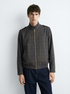 Bomber gris cuadros textura liviana.