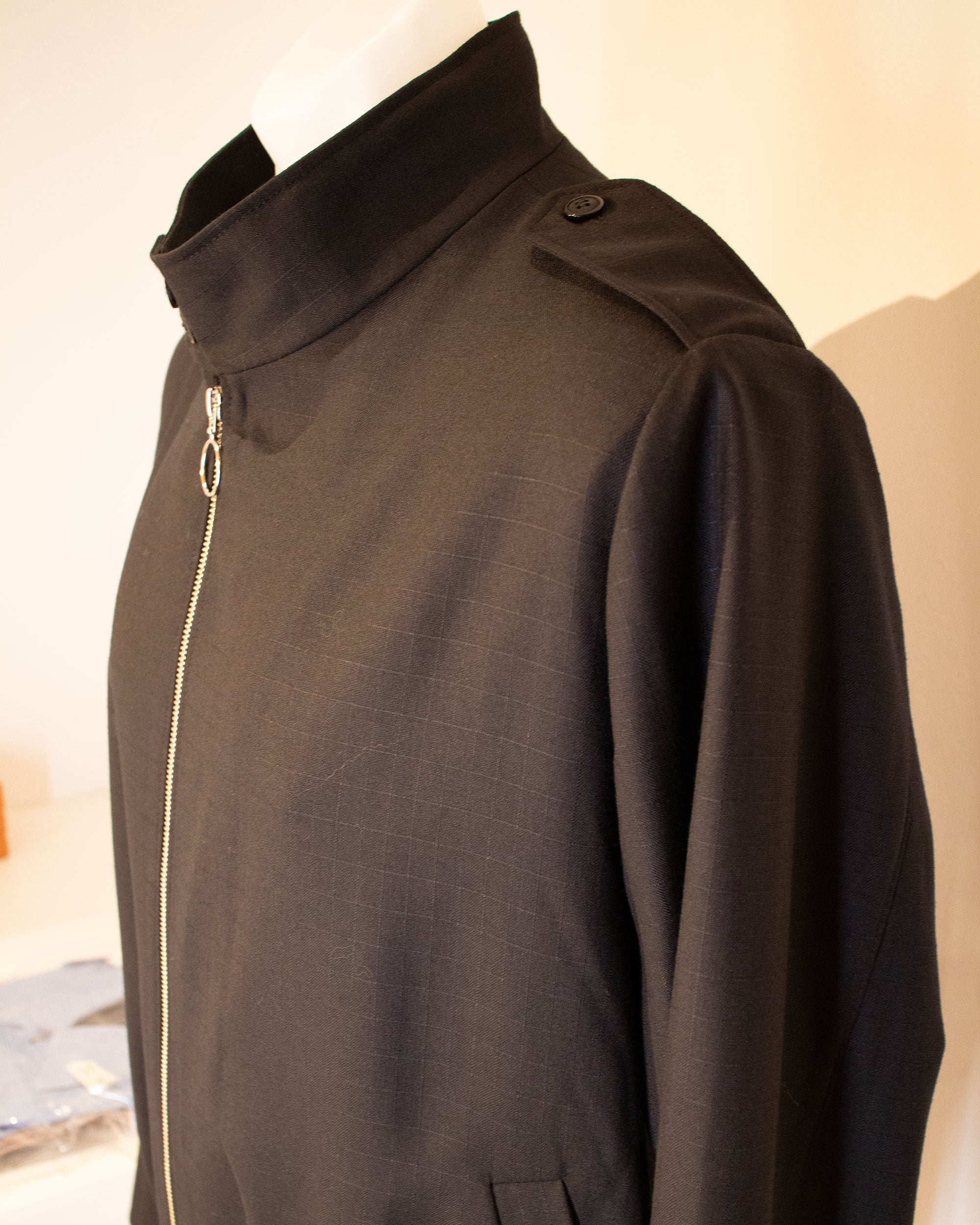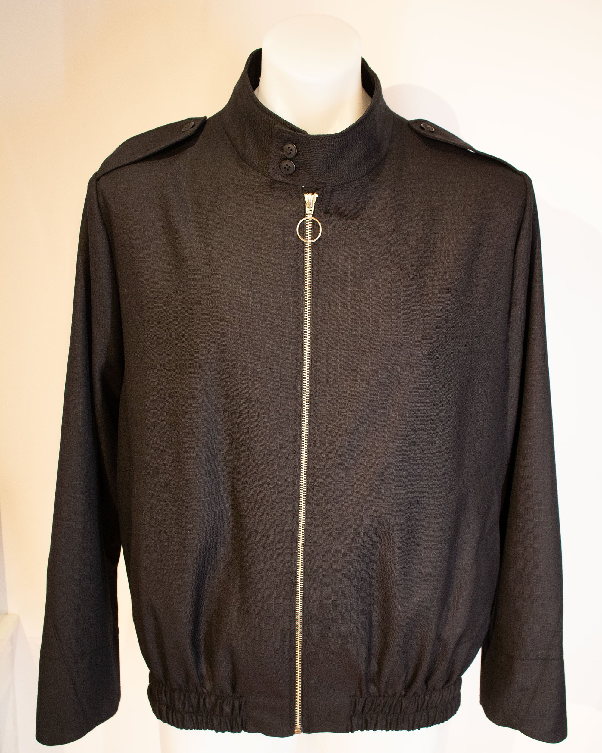 Bomber negra textura liviana.