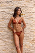 Femenina, ajustable y con un toque especial. Esta parte inferior de bikini cuenta con tirantes a los costados que permiten anudar y ajustar fácilmente a tu medida, adaptándose de forma cómoda y favorecedora al cuerpo.