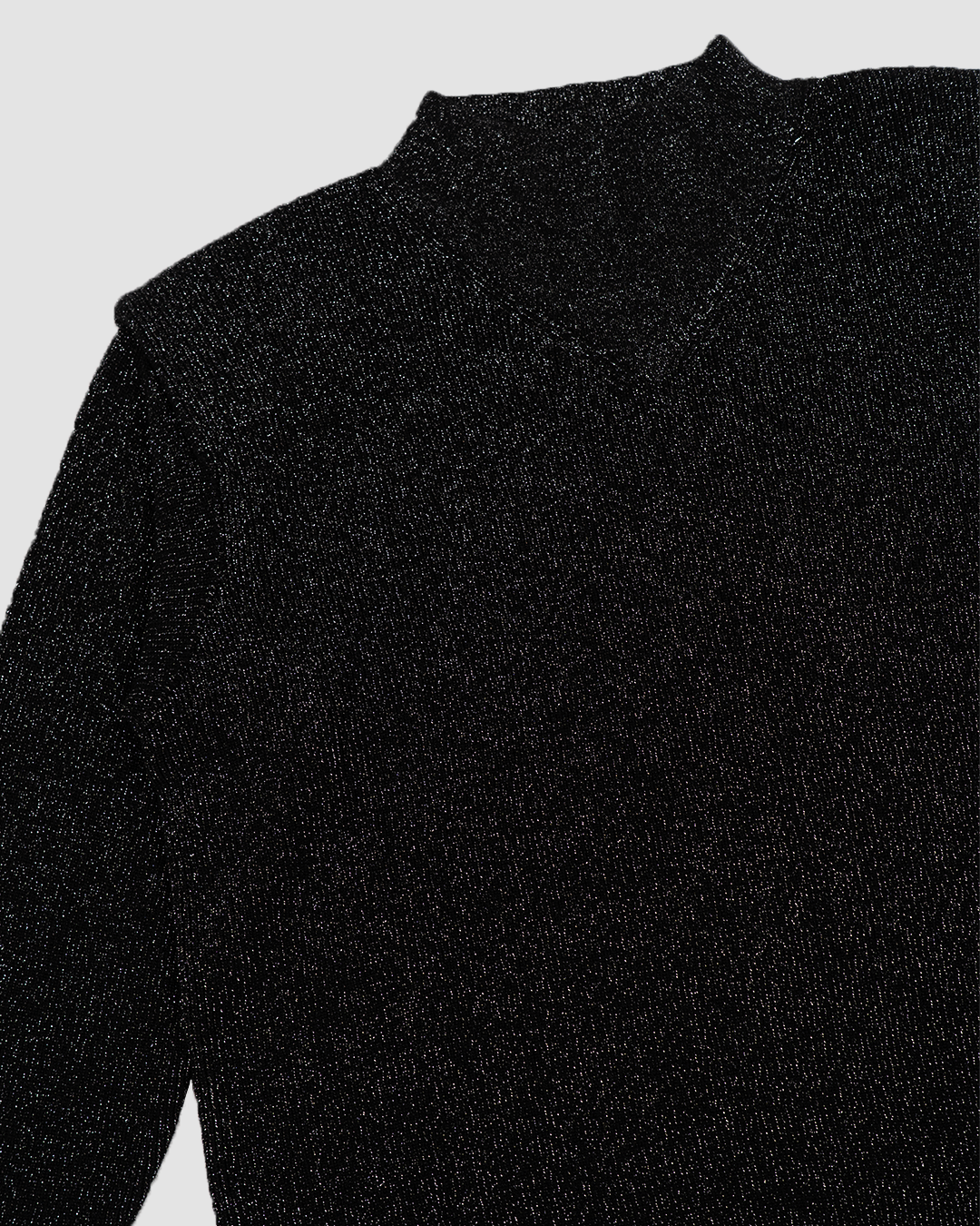 El CHALECO TANGER es un sweater tiene un calce estructurado, con largo a la cintura y sisa al hombro que camufla unas hombreras que le dan una vibra como de los 80´s. Su tejido es flexible lo que permite ajustarse a diferentes cuerpos y además, su mezcla con fibras metalizadas en tonos acero, le dan una versatilidad y elegancia única que elevará tu look en cualquier ocasión.