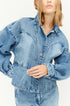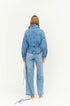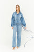 Chaqueta de jeans, manga amplia y larga, hombros caídos y silueta acinturada. Cierre con botones metálicos en delantero.
