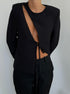 Blazer con escote asimétrico y mangas largas. Diseñado en nuestro tejido de mezcla de lino, con cierre delantero en lazo y boton de nácar en hombro.