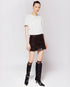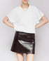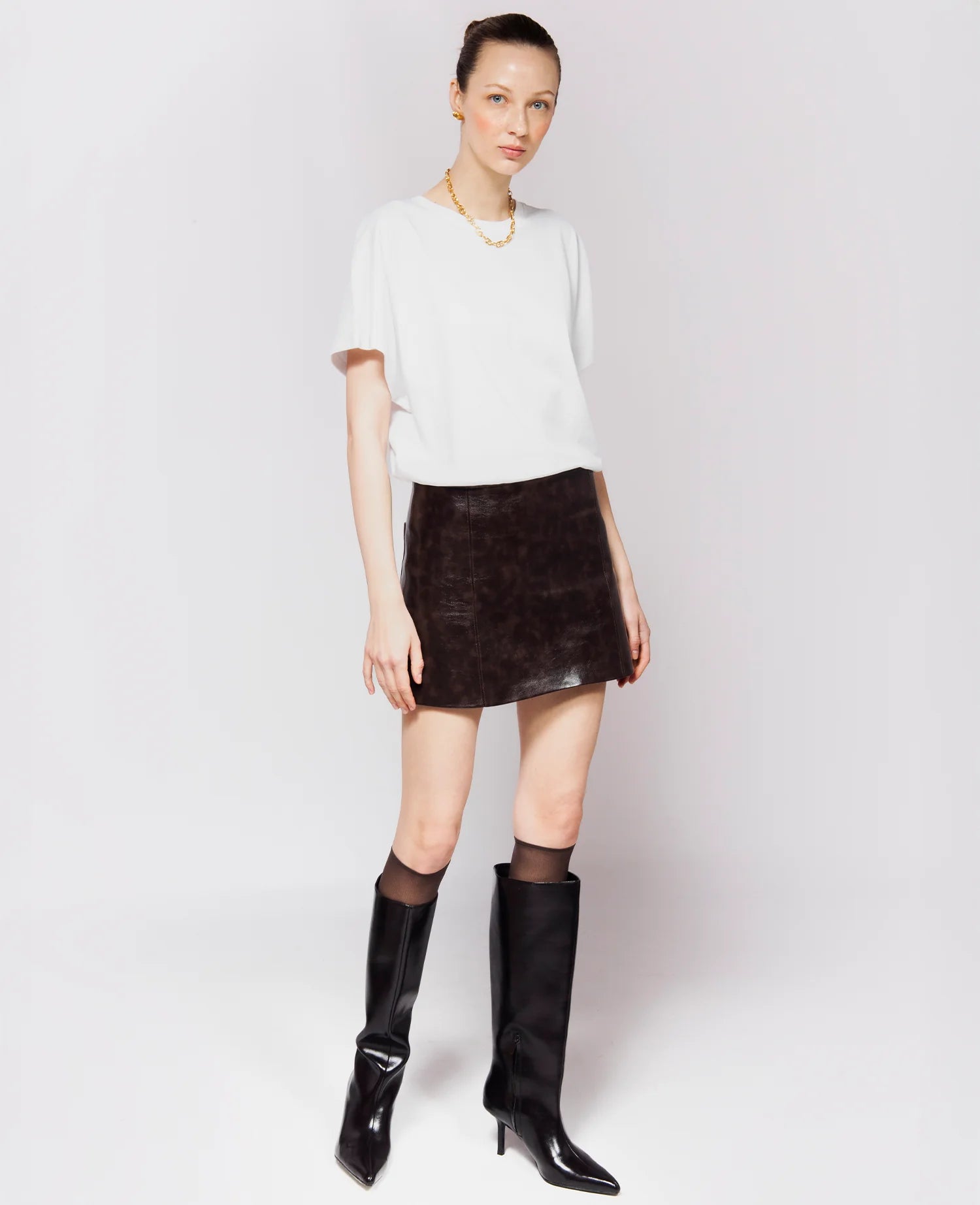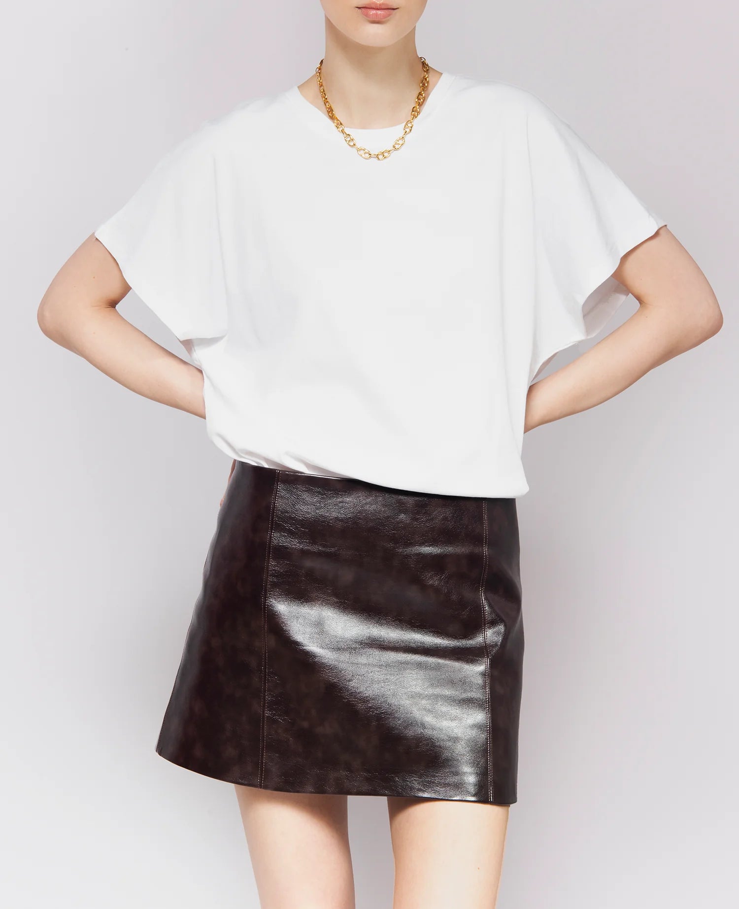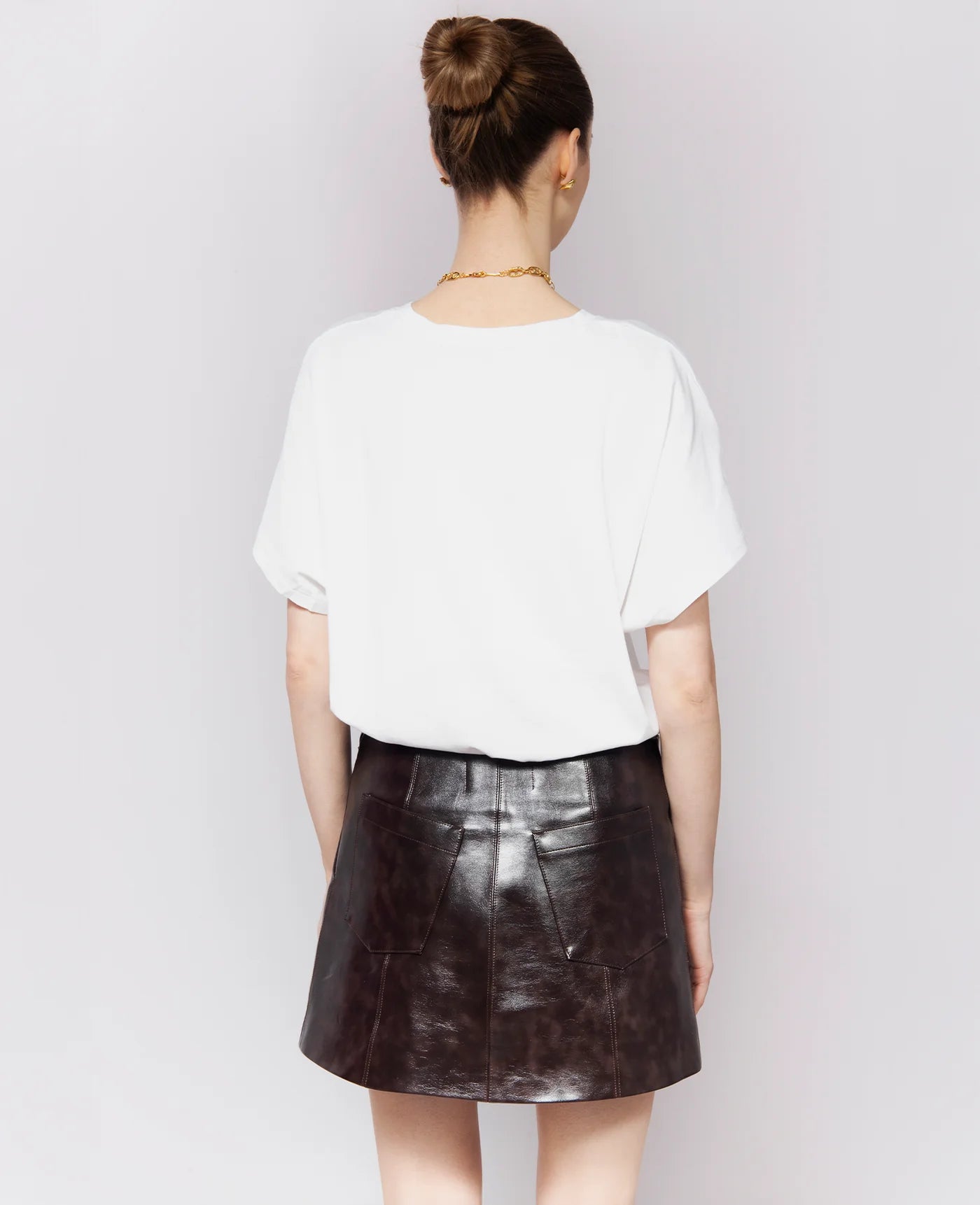 Mini falda en eco cuero efecto desgastado. Cierre lateral invisible. Bolsillos traseros.