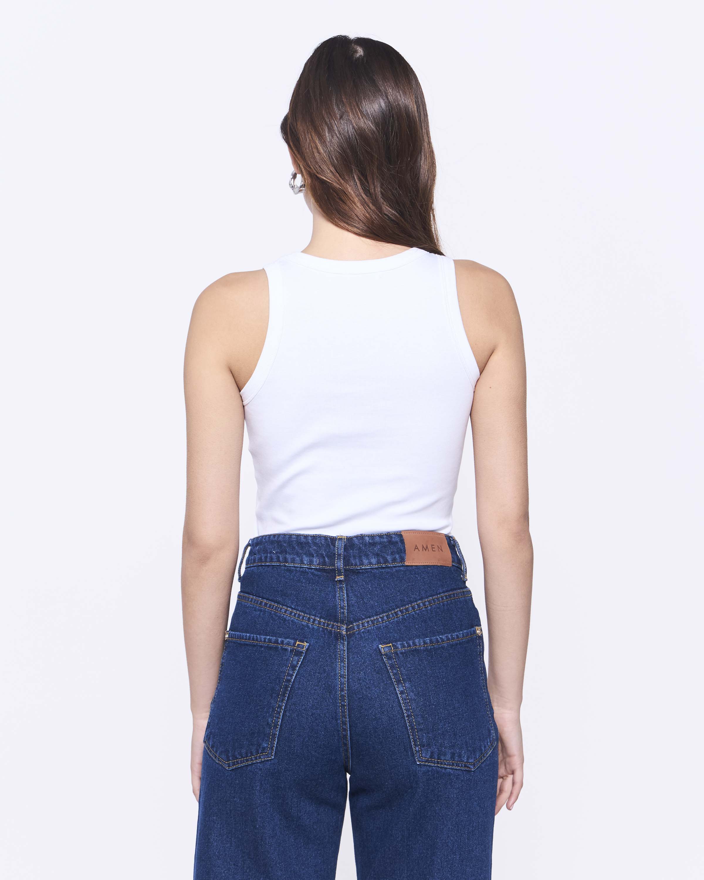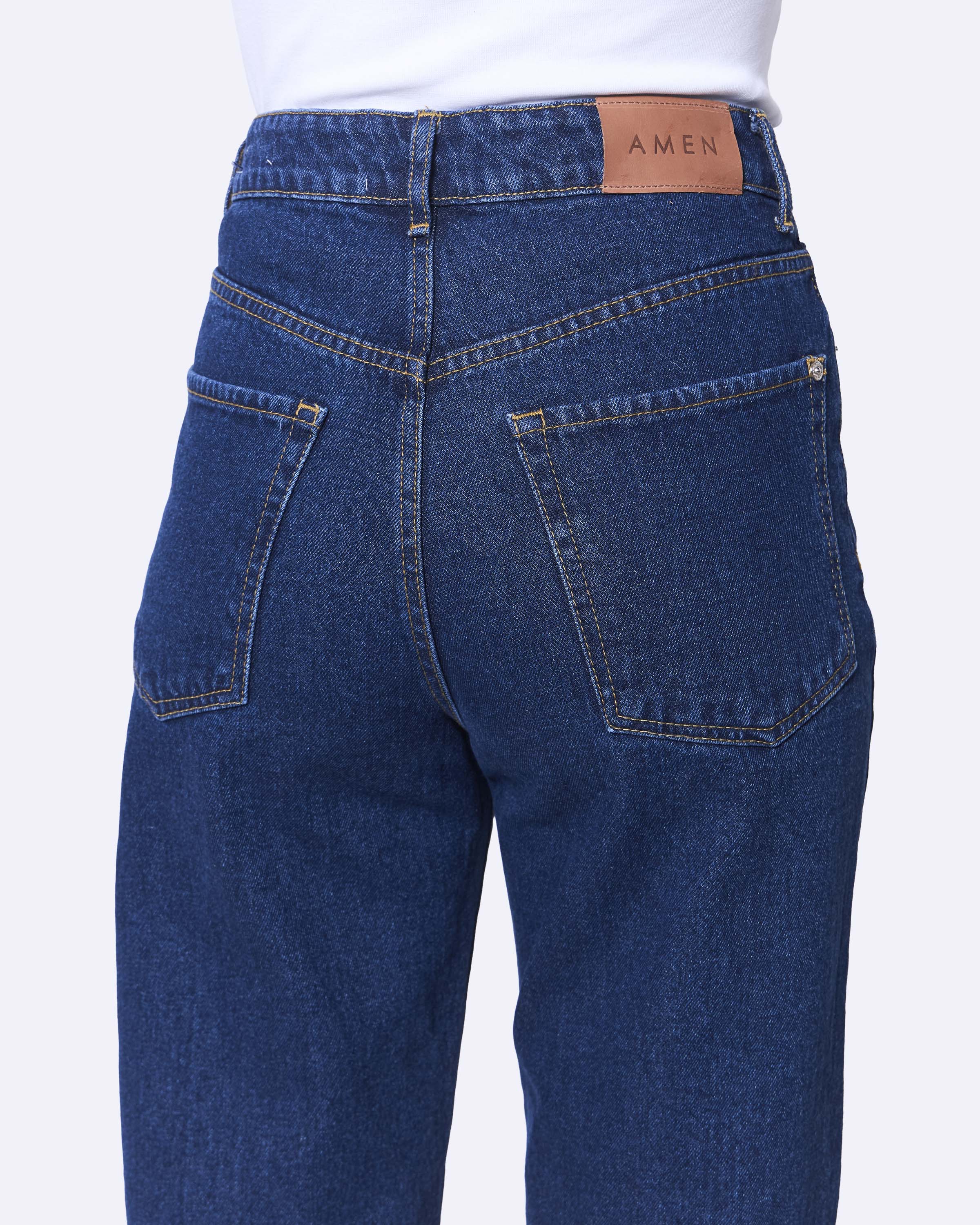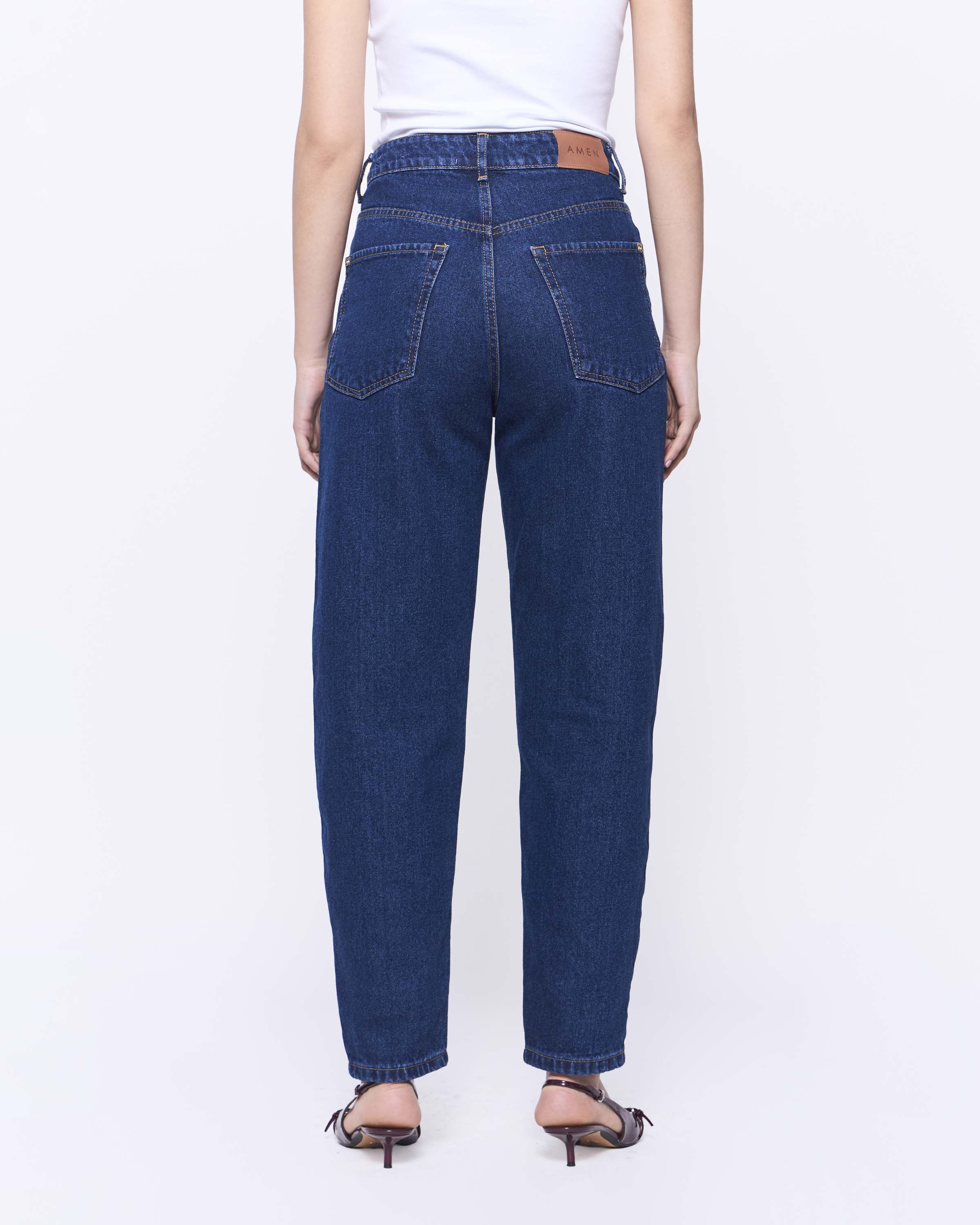 Los Jeans Ema Barrel están confeccionados en denim de algodón regenerativo rígido de peso medio sin elasticidad, con un lavado Negro.