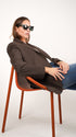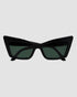 Lentes de sol con silueta cat-eye. Estructura de acetato con logo metálico. Lente con protección UVA / UVB y polarizado.