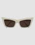 Lentes de sol con silueta cat-eye. Estructura de acetato con logo metálico. Lente con protección UVA / UVB y polarizado.