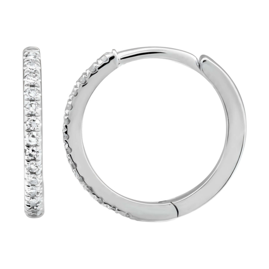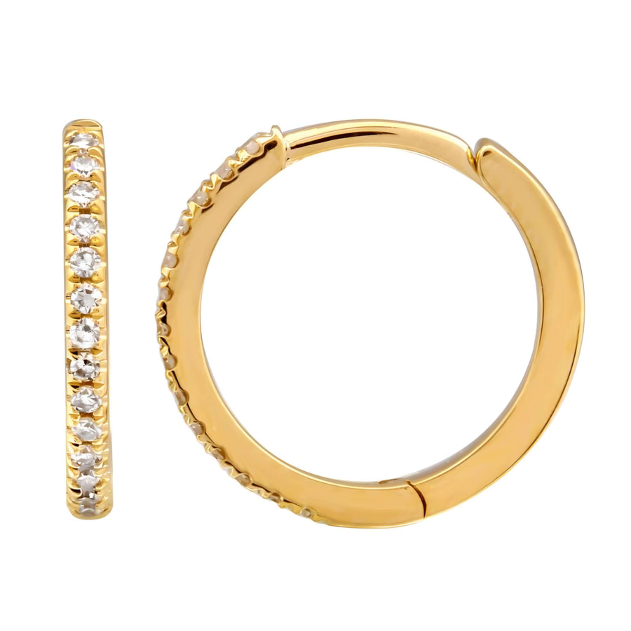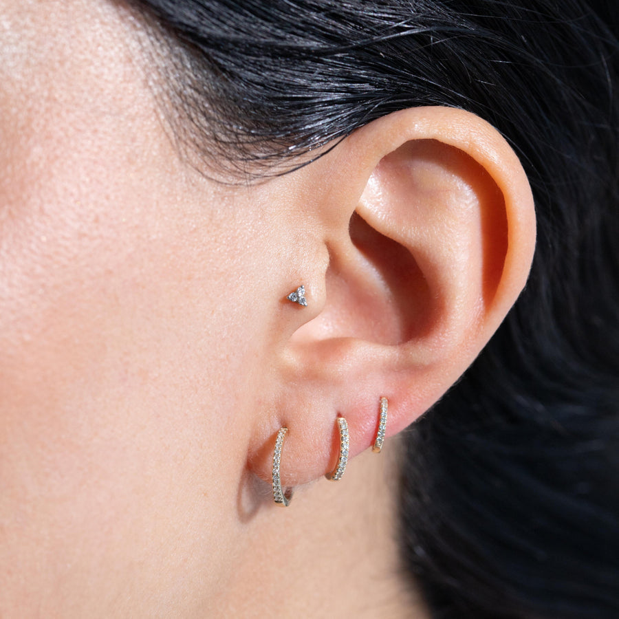 Miniargollas de oro 14k y diamantes naturales. XS: 3a perforación, 8 mm, 0.05 ctw, 0.62 grs. S: 2a perforación, 10 mm, 0.06 ctw, 0.85 grs. M: 1a perforación, 12 mm, 0.08 ctw, 1.10 grs. Diámetros externos.