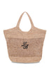 Nuestro bolso de raffia es ideal para acompañarte en tus vacaciones, tiene un diseño entretejido con un pequeño bordado y es de fibra 100% natural.