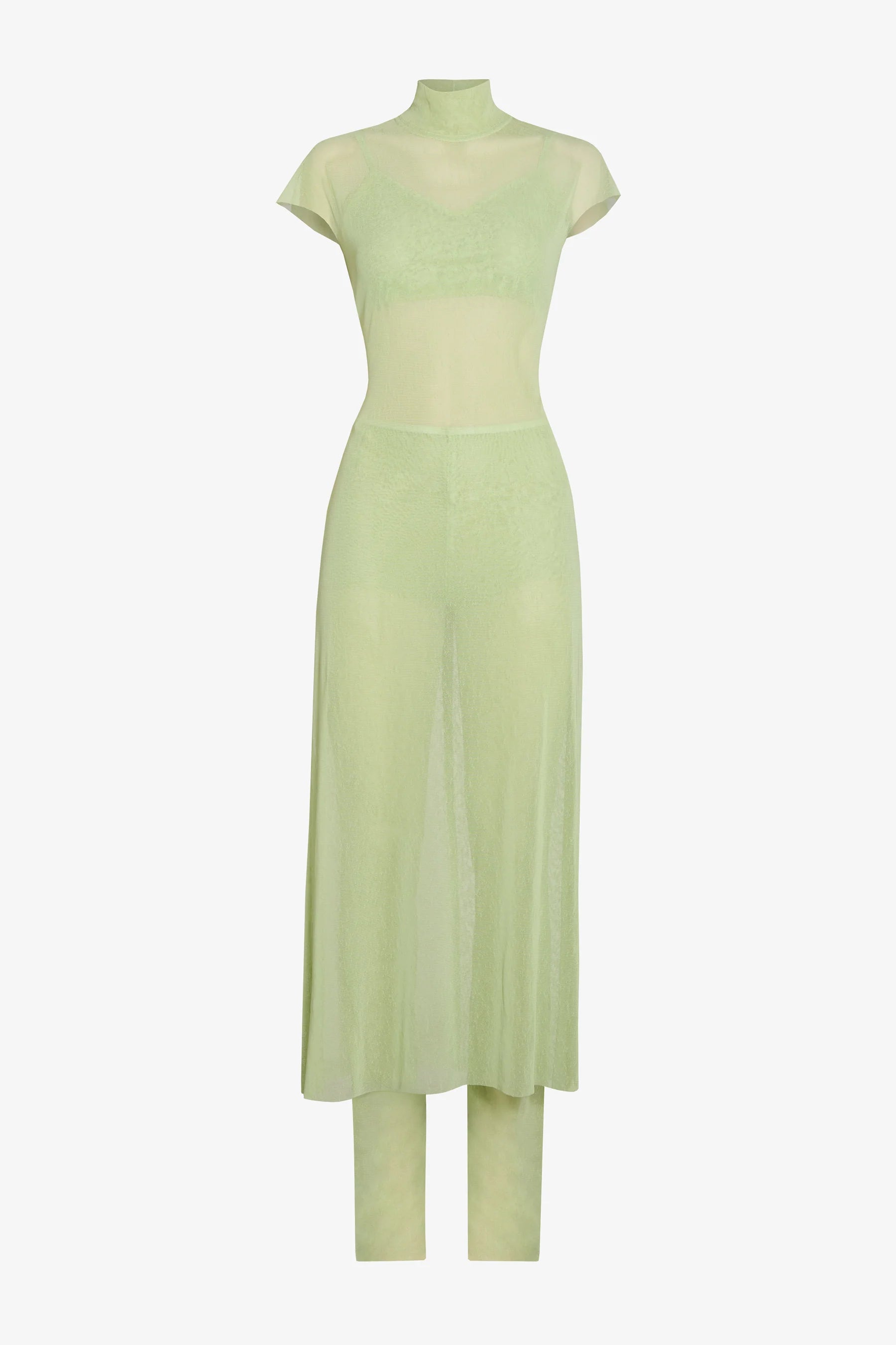 Sumérgete en la elegancia y sensualidad con este exclusivo conjunto de 3 piezas en malla transparente color verde limon. Diseñado para quienes desean destacar con estilo y sofisticación, este set incluye un pantalón, un top y un vestido, cada uno cuidadosamente confeccionado para ofrecer una apariencia chic y atrevida.
