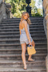Short con pretina elástica y abertura en los costados con detalle de amarras.