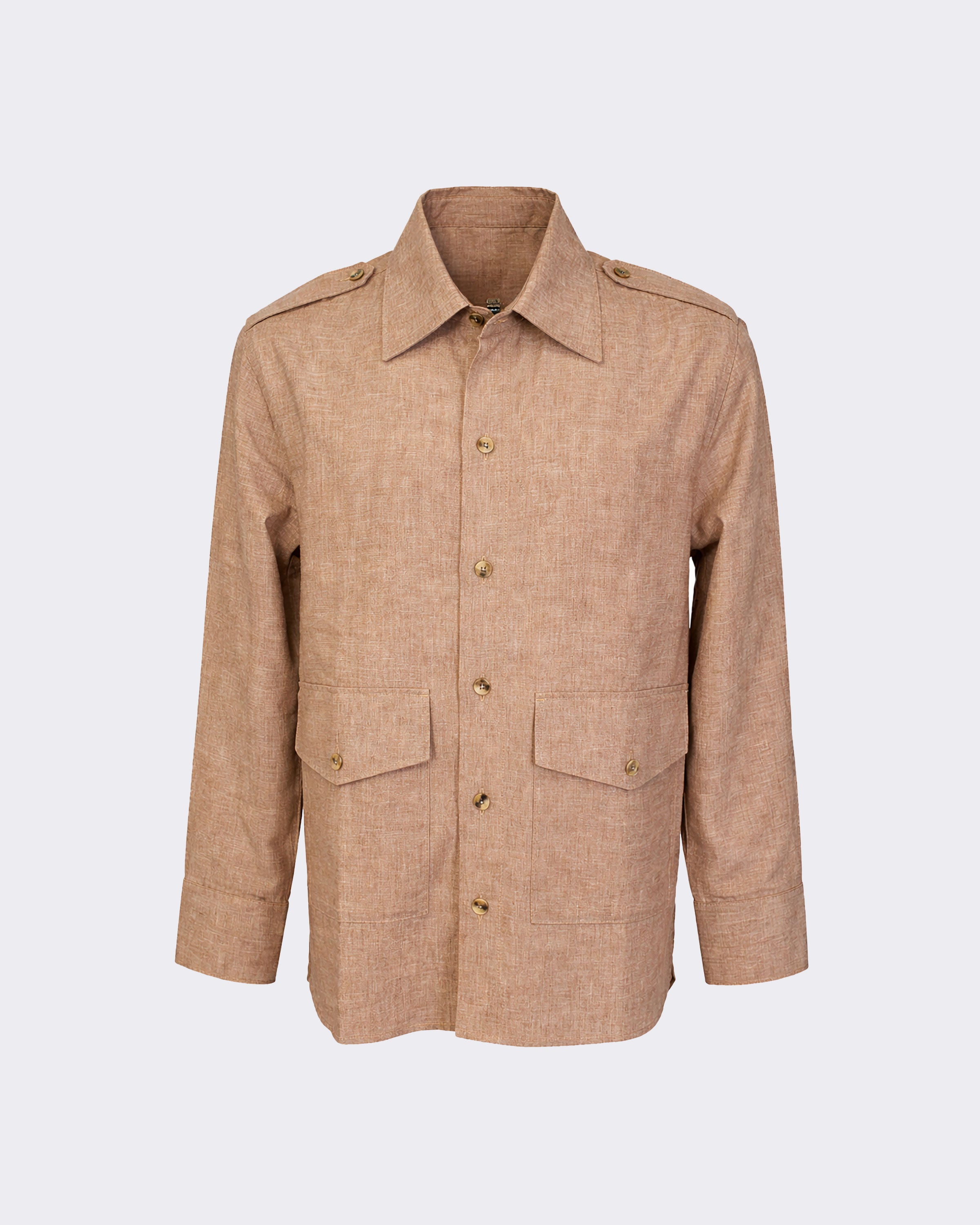 Sobre camisa lino café.