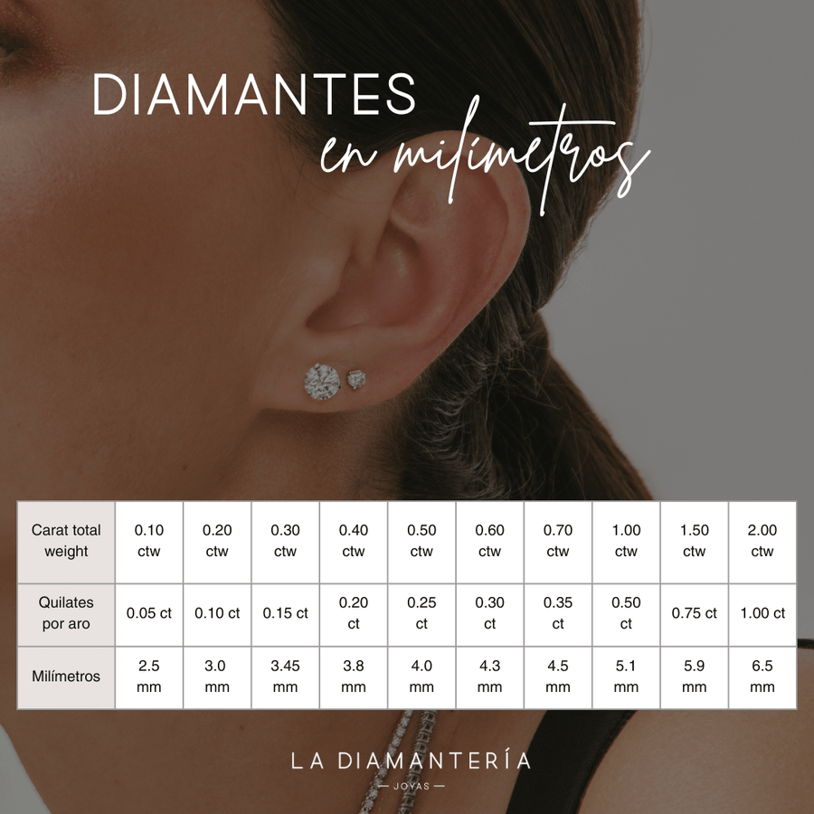 Aros de oro 18k y diamantes naturales en engaste canasto 4 grifas. El ctw (carat total weight) corresponde al peso total en quilates, del par de aros.