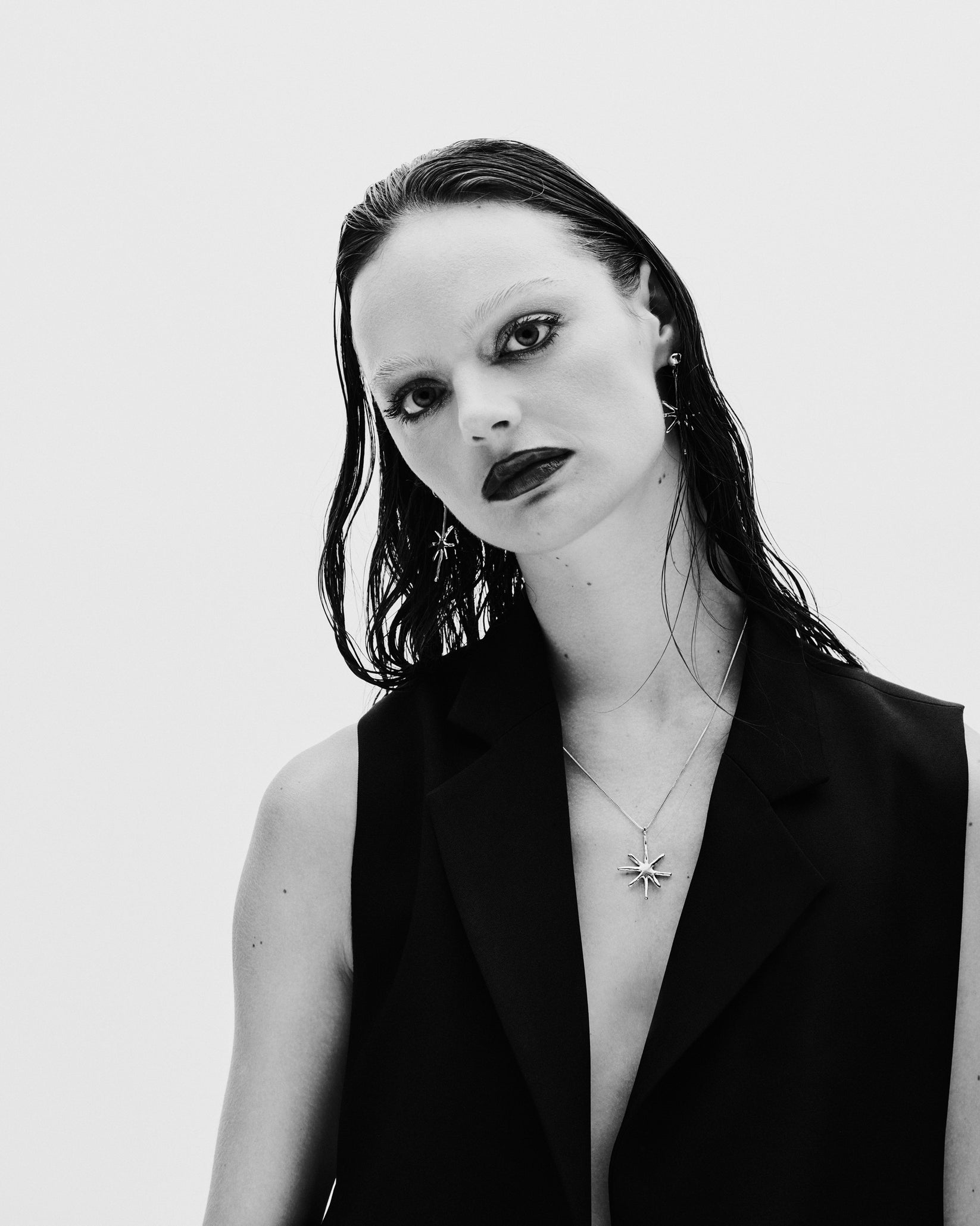 Diseñado como parte de la colección Altar, el collar Stella está inspirado en la forma icónica de las estrellas, en su centro una esfera luminosa que mantiene su forma debido a la gravedad.
