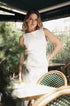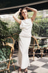 Top al cuerpo con cuello bote, pinzas delanteras y amarra en la espalda.