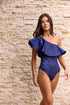 Un diseño que combina elegancia, romanticismo y modernidad. Este traje de baño asimétrico destaca por su gran vuelo que enmarca el escote y el hombro descubierto, creando una silueta única, femenina y con mucho movimiento.