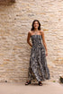 Fresco, femenino y lleno de encanto. Este vestido largo destaca por su parte superior con panal de abeja (smock elástico), que se adapta perfectamente al cuerpo, realzando la figura con suavidad y sin apretar. Su diseño incluye una delicada amarra fina para amarrarlo al cuello