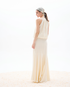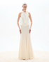 Vestido largo en crêpe texturado. Detalle de cuello halter.