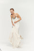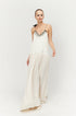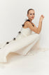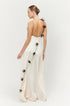 Vestido largo plisado con pabilos. Detalle de vuelo en escote y tirante multi flores de muselina.