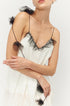 Lavar a mano con cuidado. Enjuagar sin remojo ni frotado, y evitar el uso de lejía, cloro o suavizante. Manipular con delicadeza para mantener su forma. Secar verticalmente a la sombra. Planchar suavemente con teflón para proteger la prenda.
