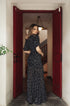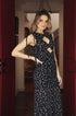 Vestido largo elasticado de tela mesh con mangas abullonadas desmontables (con amarras), Escote redondo con ojo de cerradura en la parte delantera.